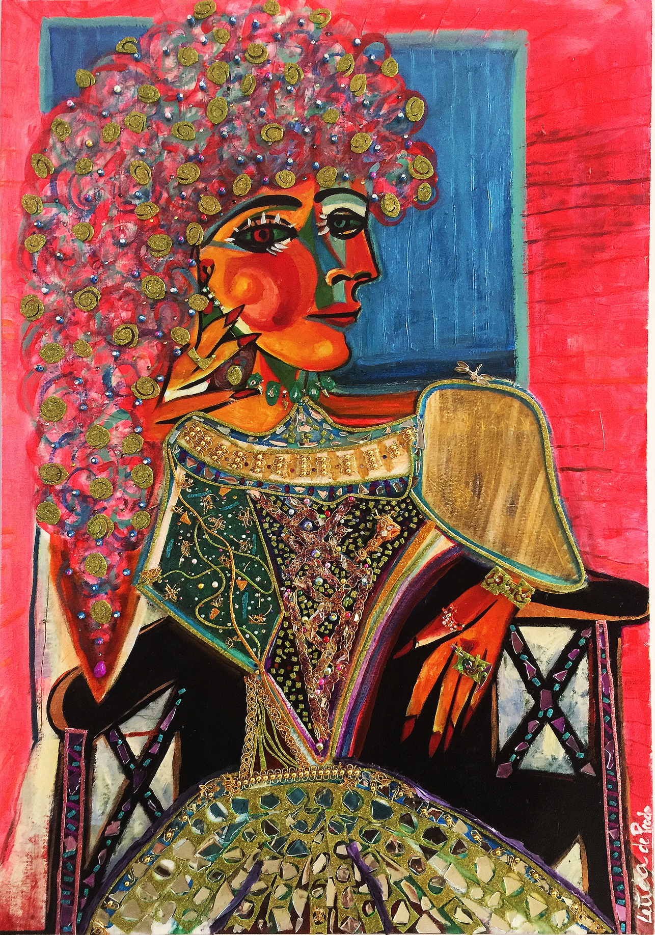Oil on canvas infused with rhinestones, beads, silk mixed media