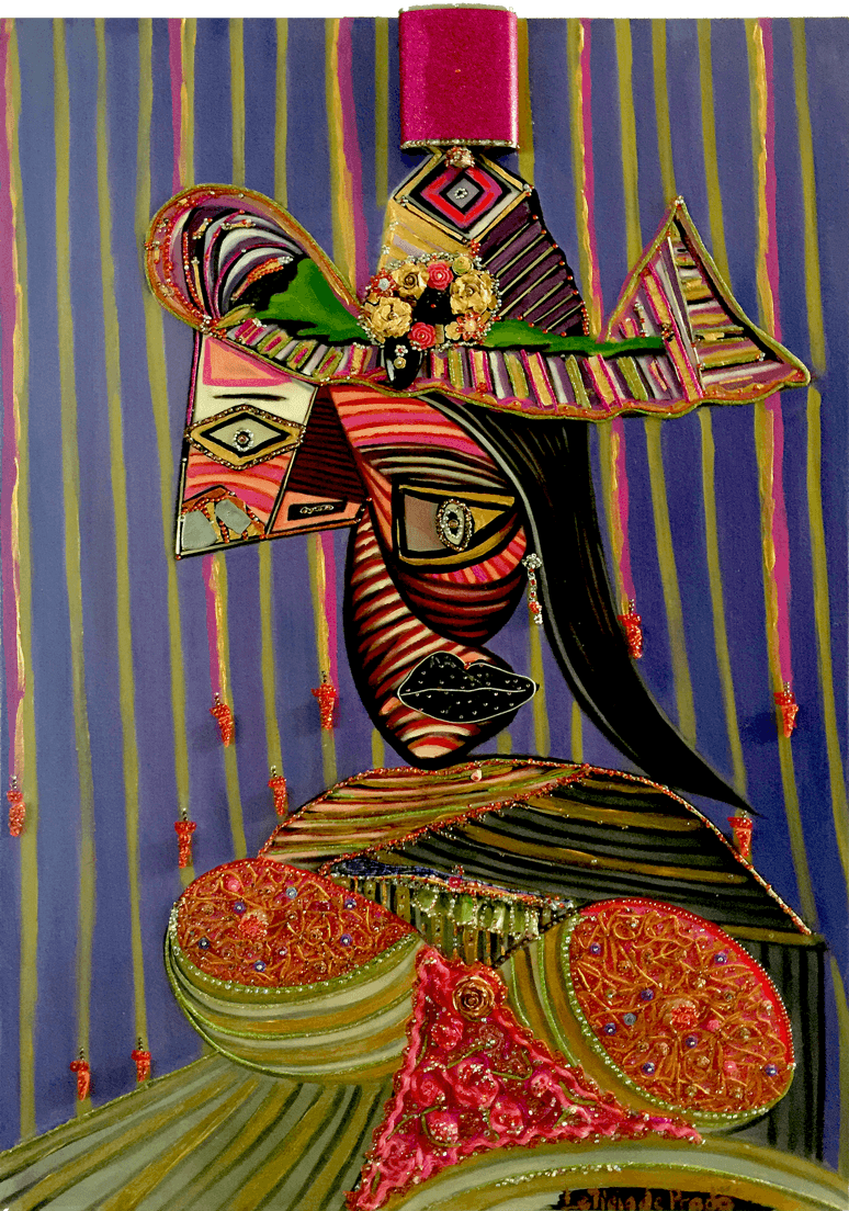 Rhinestones, ilk, mixed media infused on oil on canvas