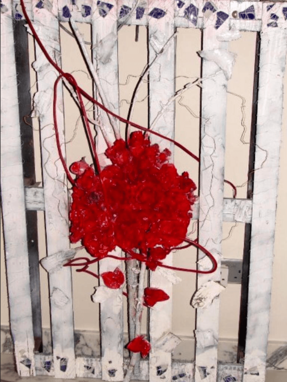 silk flower, metal on pallet